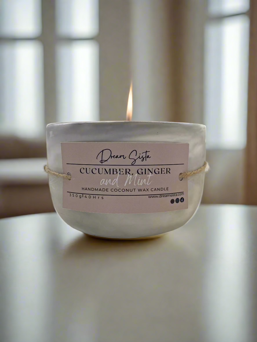Transform your space into a sanctuary of tranquility and invigoration with our Cucumber, Ginger, and Mint candle. Perfectly crafted to deliver a harmonious blend of fresh and vibrant scents, this candle offers an unparalleled sensory experience.