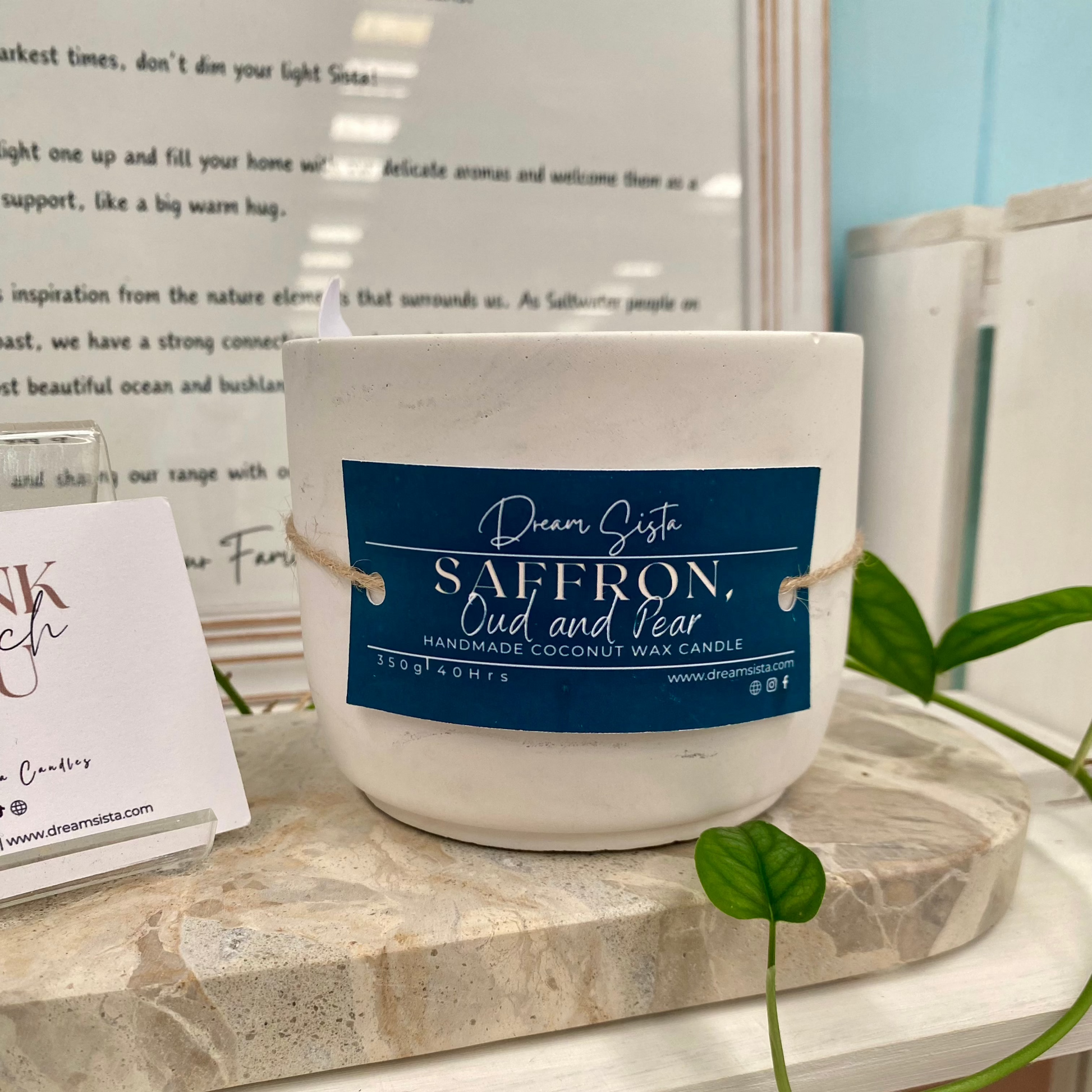 Dream Sista Candles are hand poured using natural coconut wax, high quality fragrance oils and wood wicks, combined in our handmade concrete vessels.